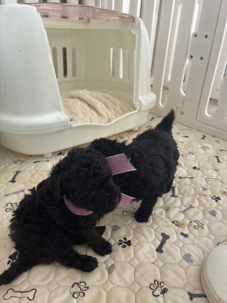 見分けつかないから、ウイちゃんの首輪つけてたけど大きすぎたのでリボンに変更。