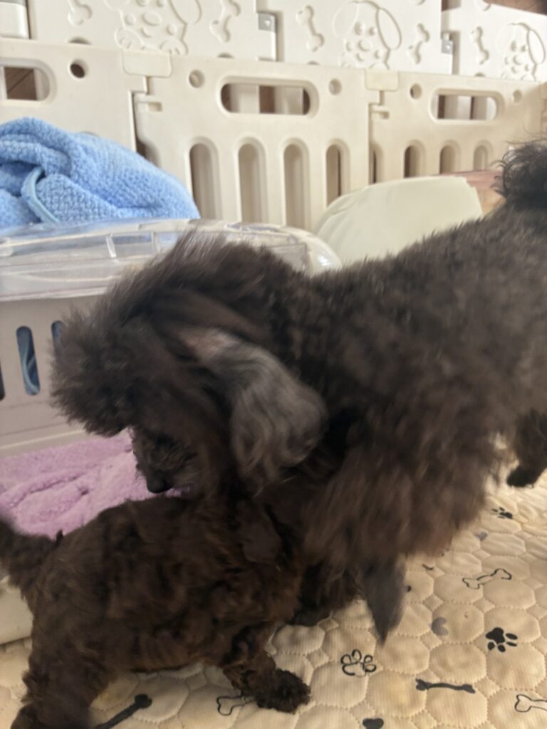 寝てるところを起こして体重を測ったから、目が覚めてお腹空いて『ママ〜!!』って叫んでた🐶🐶🐶